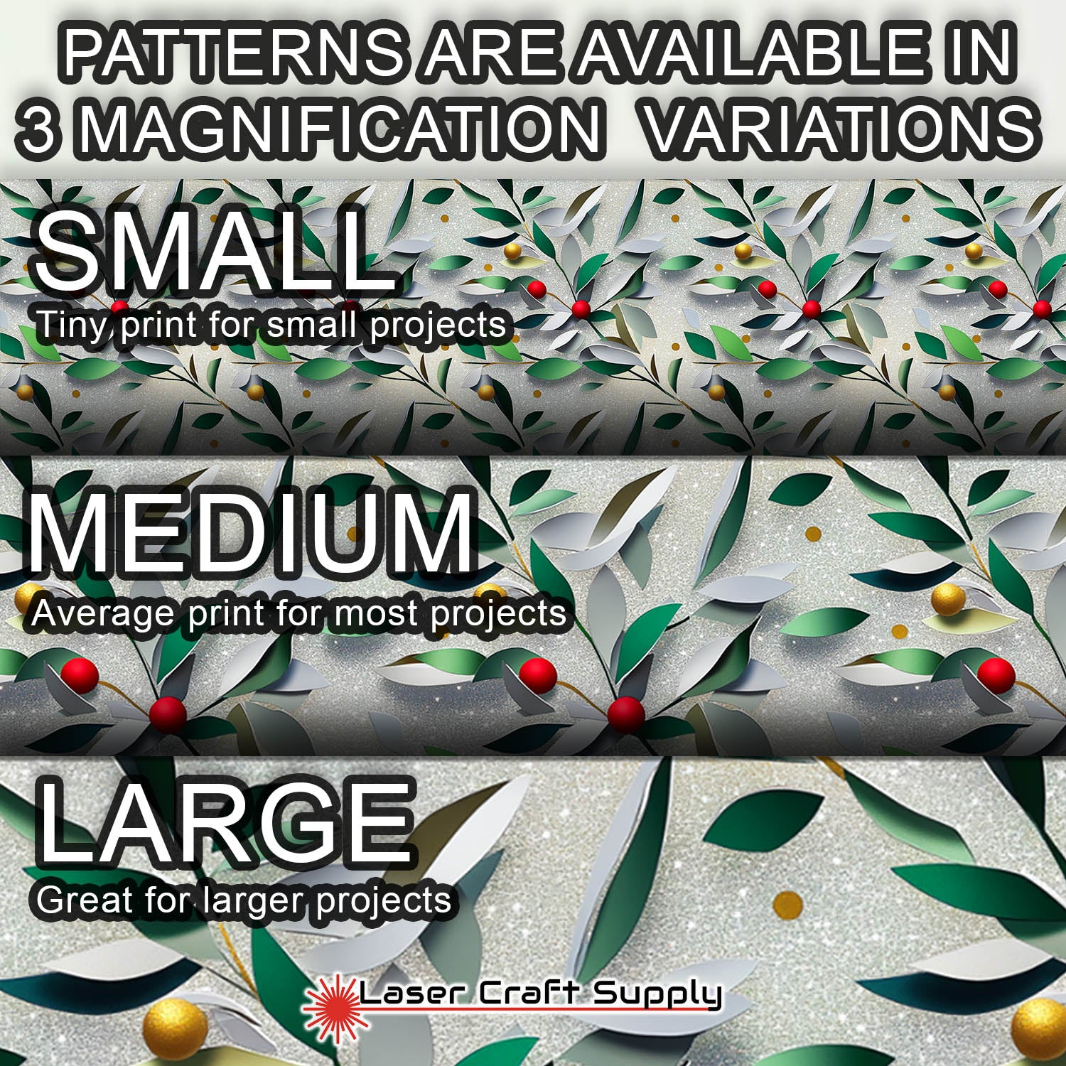 ALL SHEETS ARE 12" X 19" and Designs are available in 3 different Magnifications... Small, Medium and Large, and varies in thickness depending on the choice you make.