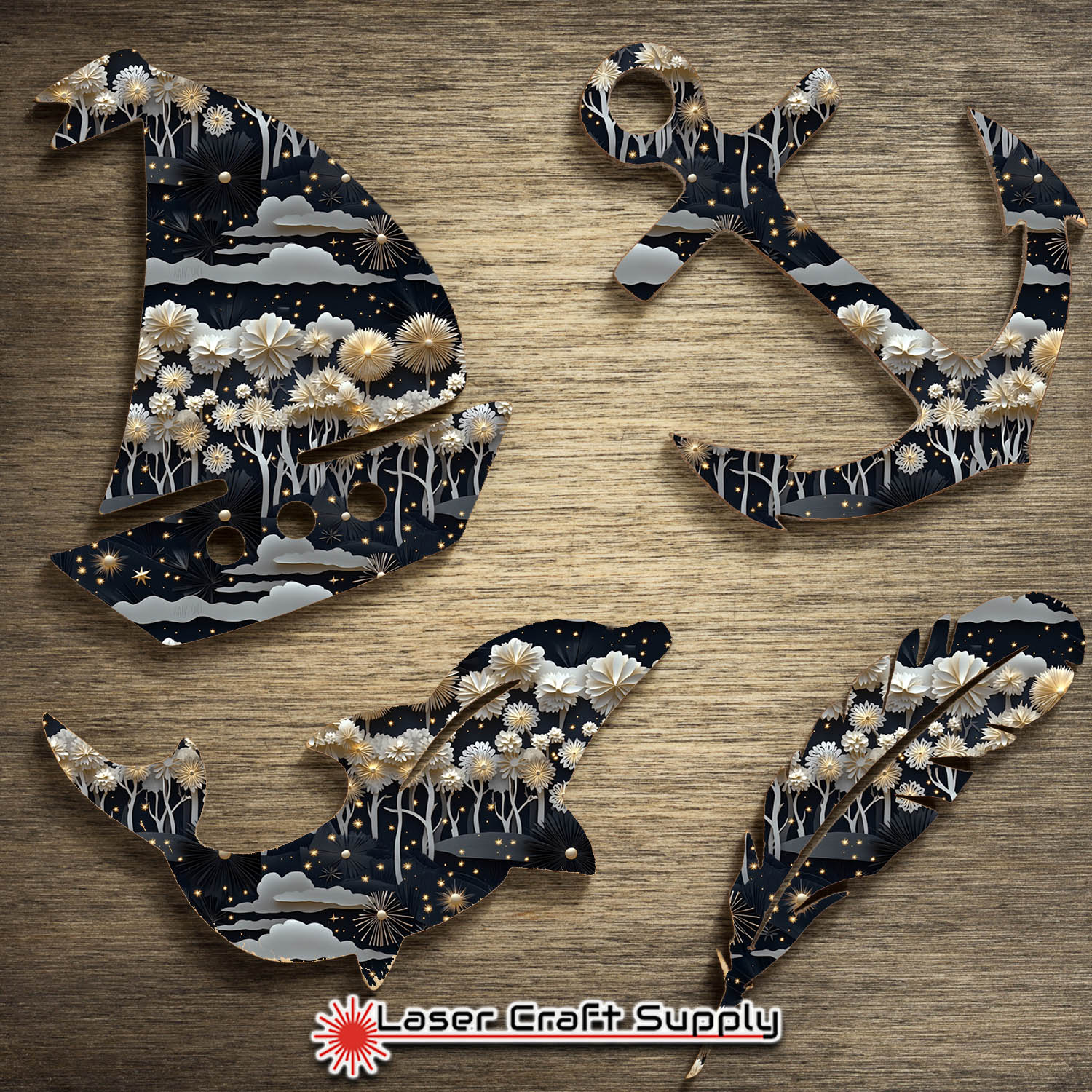 3mm MDF Wood: Cuts and Engraves with Diode and CO2 Lasers, Image on One Side or Both Sides.